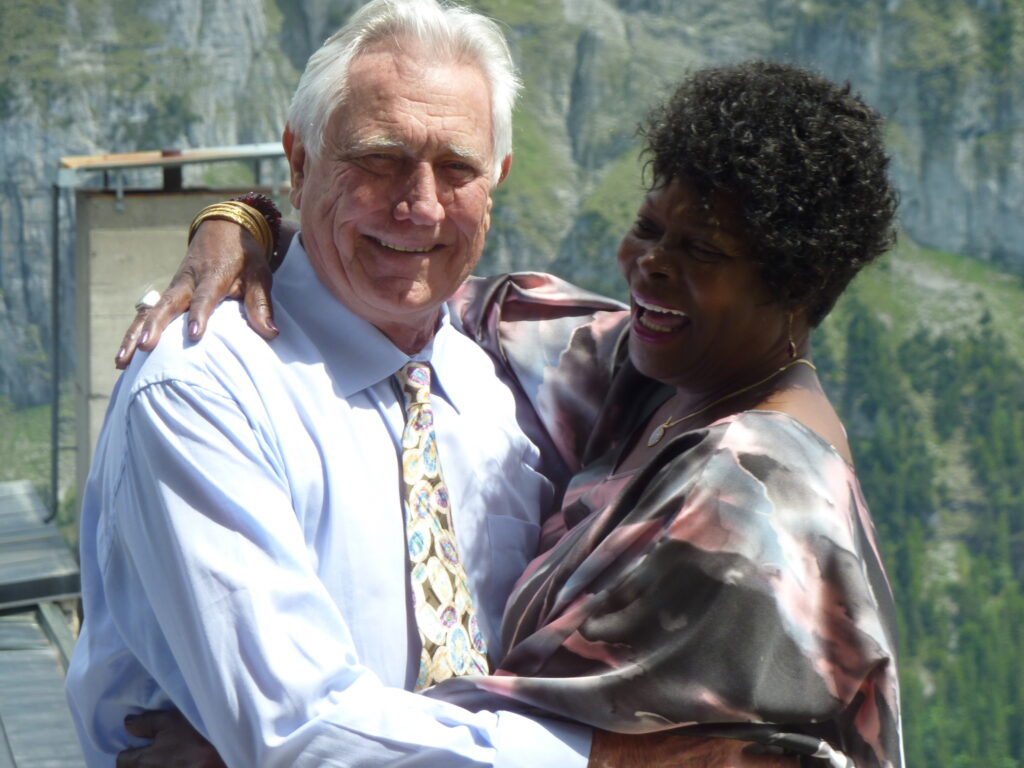 George Lazenby et la James Bond Girl Sylvana Henriques, également conviée au Schilthorn lors de l’inauguration du nouvel espace consacré à l’agent 007.