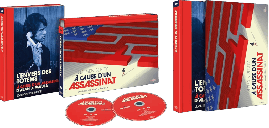A cause d’un assassinat est disponible en Coffret Ultra Collector Blu-ray+DVD+livre (CUC pour les initiés) chez Carlotta. Une édition Blu-ray simple est également disponible, mais on ne pourra que conseiller à l’aficionados de thrillers paranoïaques 70s à se diriger du côté du coffret, le livre étant de qualité éditoriale exceptionnelle.